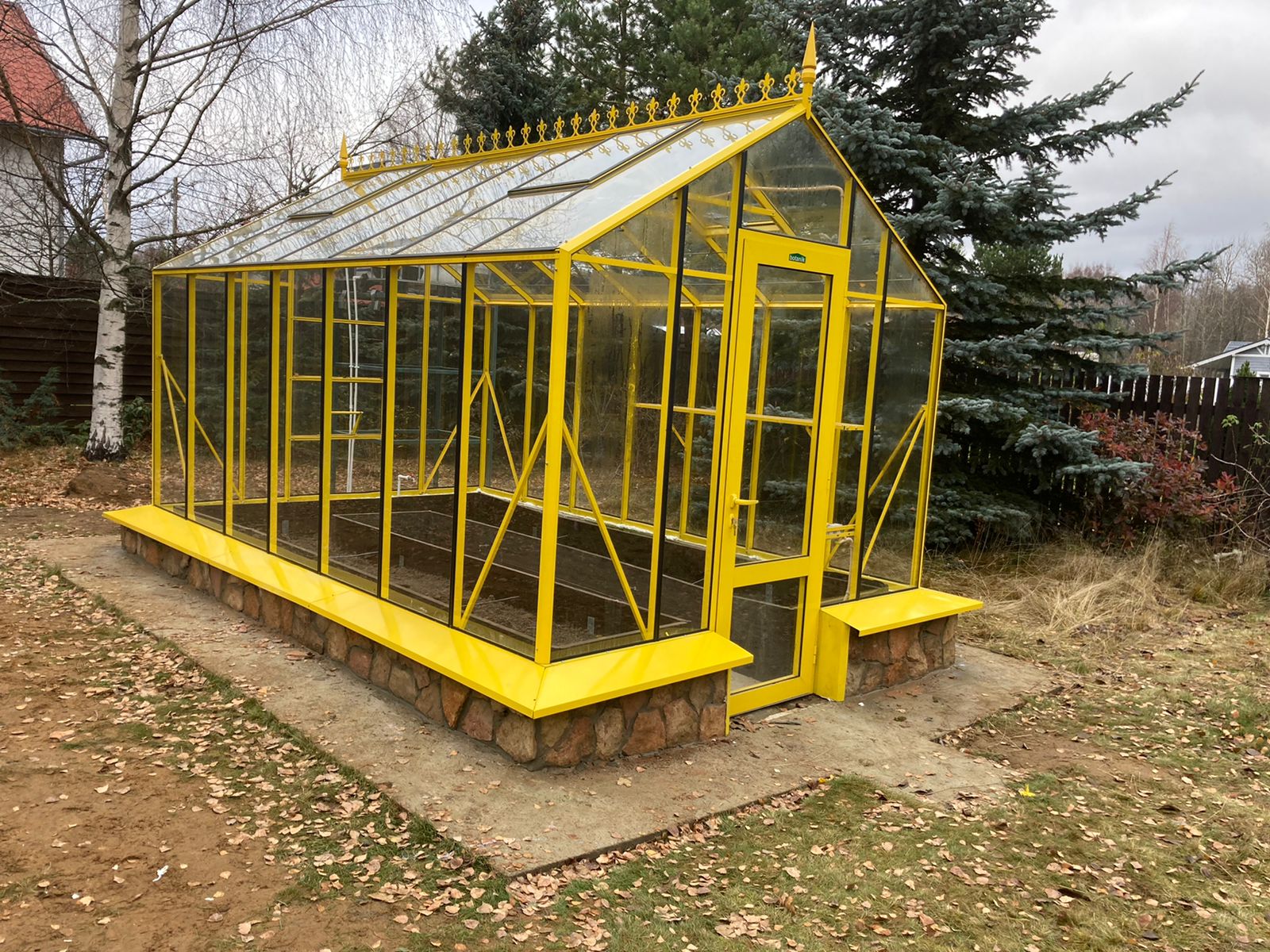 Стекло, используемое для покрытия, отличается высокой прозрачностью и долговечностью: оно не мутнеет и не теряет свойств со временем. В такой теплице легко поддерживать стабильный микроклимат, создавая оптимальные условия для овощей, ягод, зелени и цветов.