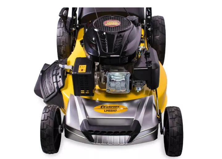 Газонокосилка бензиновая Champion LM5347 – крупноразмерная модель с большой мощностью для окашивания больших площадей газона.