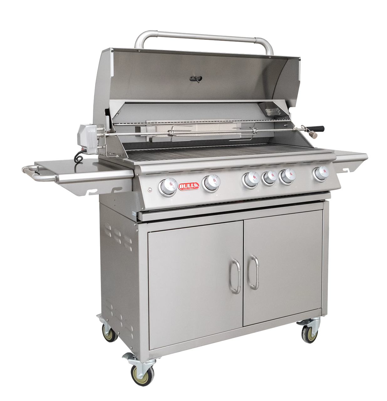 Наша самая популярная модель. Оснащена задней керамической горелкой и 4 основными горелками, отлитыми из нержавеющей стали. Вертел входит в комплектацию.