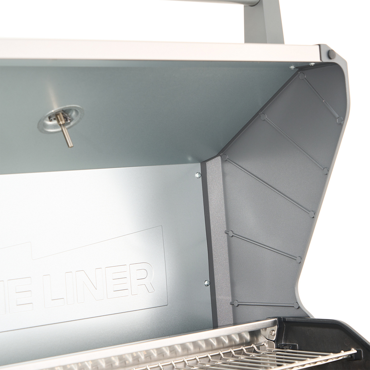 Плюс все классические фишки продвинутого гриля - двойная крышка котла с боковинами из литого алюминия, поддон жиросборника из нержавеющей стали, встроенные крючки для инструментов и усиленные прорезиненные колеса с фиксаторами. Вставки лотка-жиросборника (3шт.) уже в базовой комплектации.