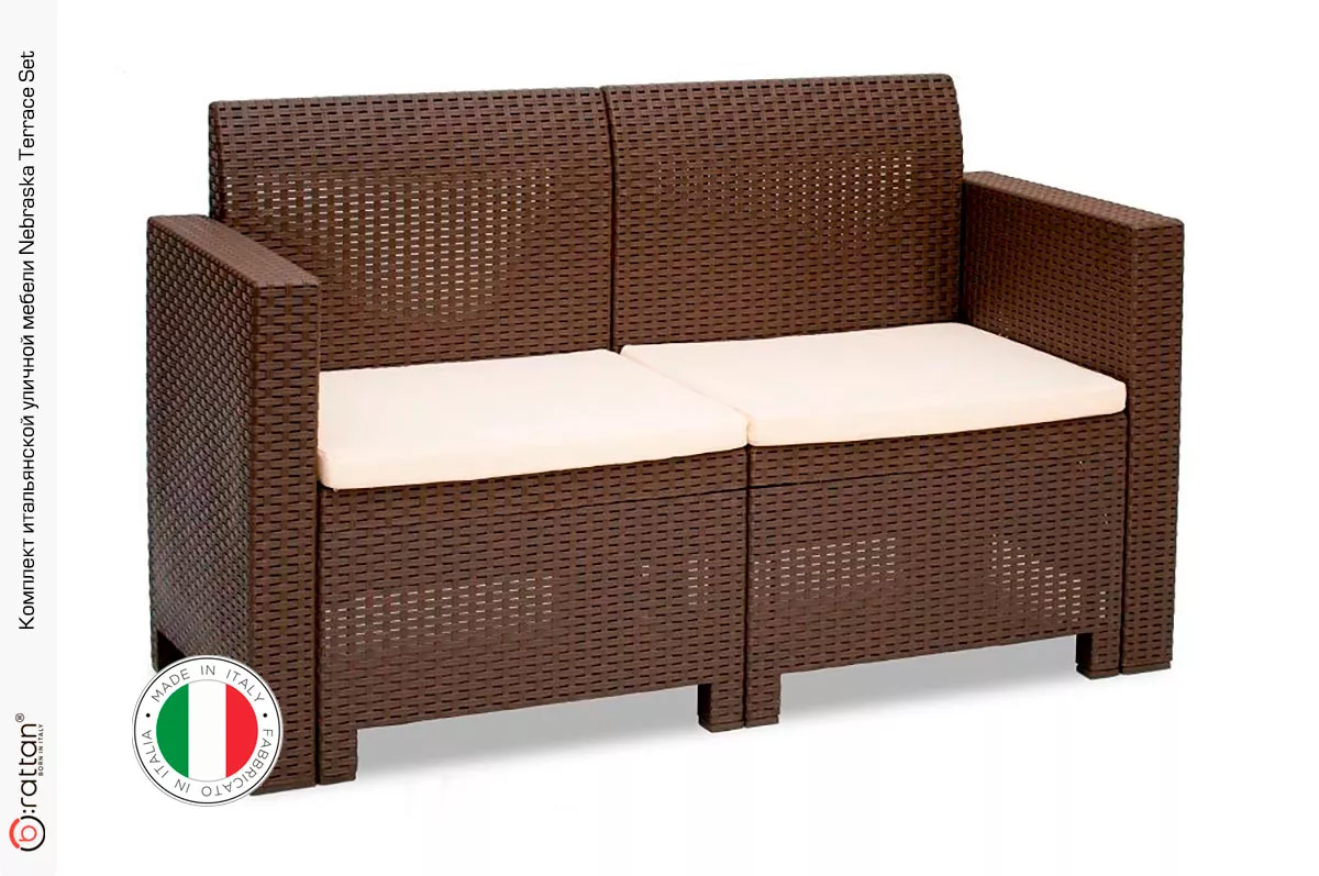 Стильный итальянский диван для кафе, ресторанов и отелей Nebraska Sofa 2 от итальянского производителя B:Rattan рассчитан на 2 персоны. Пластиковый диван порадует любителей плетеной мебели своей фактурой в стиле ротанг и прочностью: максимальная нагрузка до 160 кг.