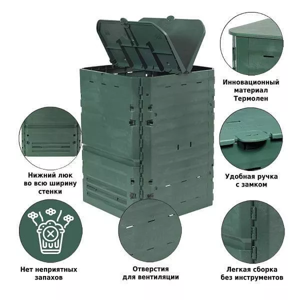 - Нижняя створка для доступа к компосту.