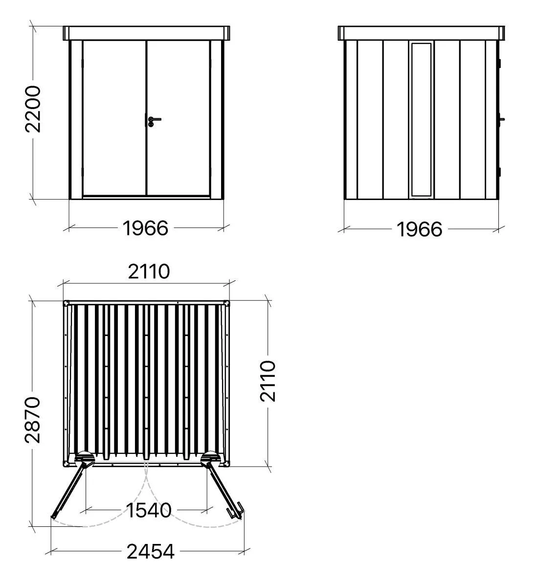 Сборный сарай серии Neo представляет из себя модульную конструкцию, состоящую из обшивки, несущих и соединительных элементов, панели со стеклом, 2-х дверей, полок, пола и элементов освещения.