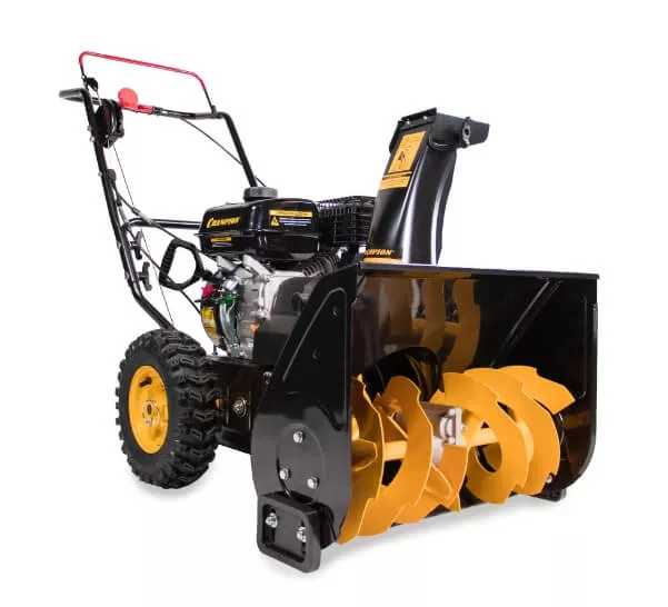 Бензиновая модель CHAMPION ST556, отличный выбор для регулярной очистки больших площадей, где требуется высокая производительность. Это мощный самоходный снегоуборщик с приводом на колеса, который уверенно двигается по рыхлому снегу и гололеду.