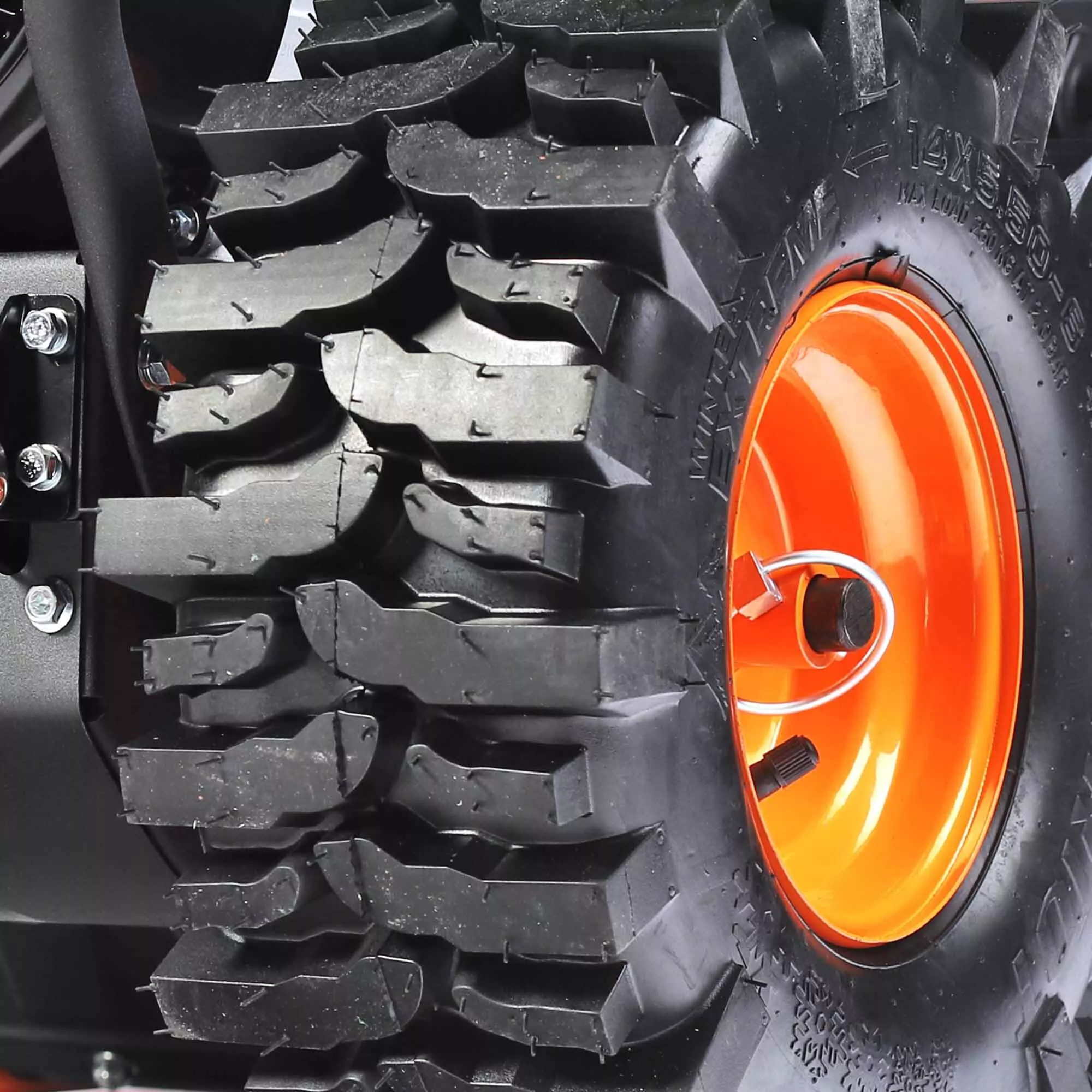 - Колеса с гусеничным протектором для лучшего сцепления;