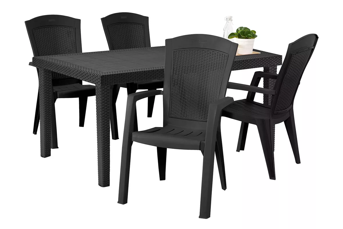 Удобный и прочный широкий пластиковый стол на 4-6 человек от компании KETER Melody порадует любителей плетеной мебели своей фактурой в стиле ротанг.