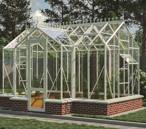 Эта теплица создана для тех, кто ценит гармонию формы и функциональность. Её выразительный силуэт в английском стиле придаст участку изысканный и современный вид, а качественное остекление и продуманная вентиляция обеспечат идеальные условия для выращивания растений.