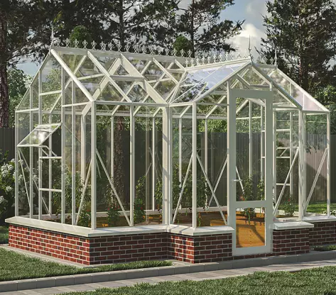Эта теплица создана для тех, кто ценит гармонию формы и функциональность. Её выразительный силуэт в английском стиле придаст участку изысканный и современный вид, а качественное остекление и продуманная вентиляция обеспечат идеальные условия для выращивания растений.