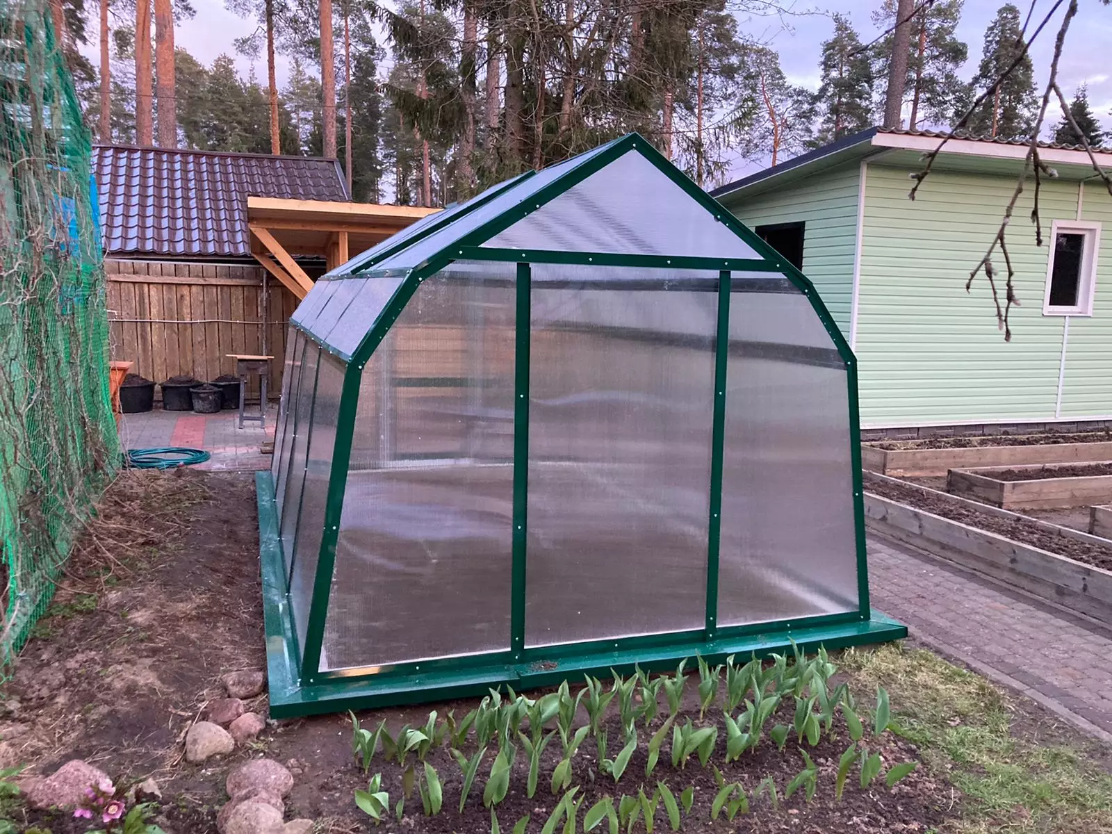 Лаконичный дизайн делает модель универсальной: теплица легко вписывается в любой садовый стиль и не перегружает пространство. Пропорции конструкции создают ощущение лёгкости, а аккуратные линии подчеркивают современный характер модели.