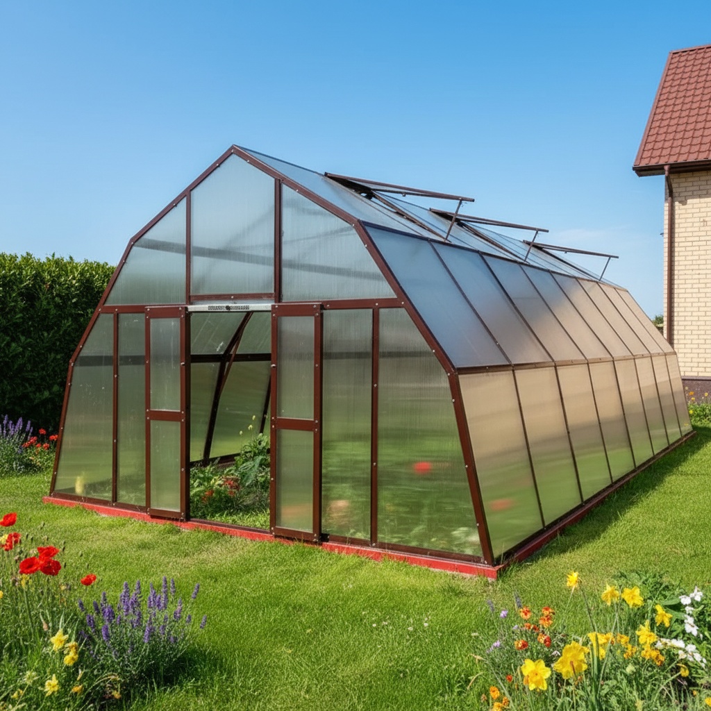 Сотовый поликарбонат, применяемый в качестве покрытия, эффективно сохраняет тепло и защищает растения от ультрафиолета и перепадов температур. Свет равномерно распределяется по всей площади, поддерживая оптимальный микроклимат даже в пасмурные дни.