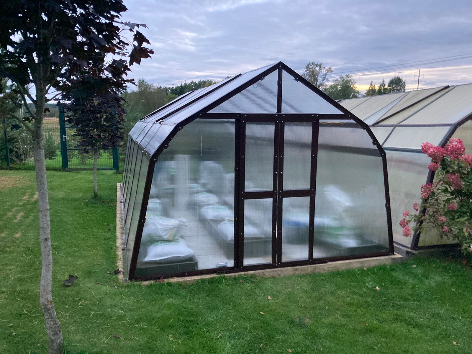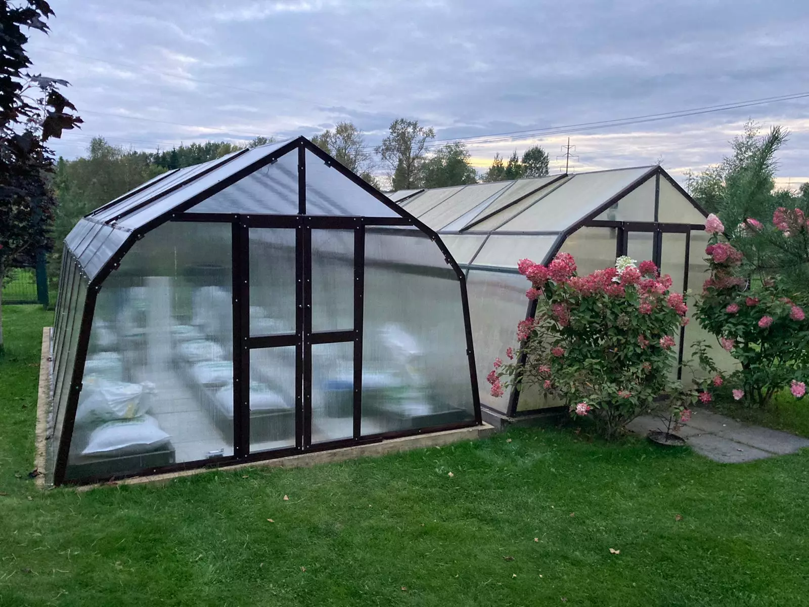 В качестве покрытия используется сотовый поликарбонат толщиной до 10 мм — он хорошо сохраняет тепло и поддерживает благоприятный микроклимат для растений в течение всего сезона.